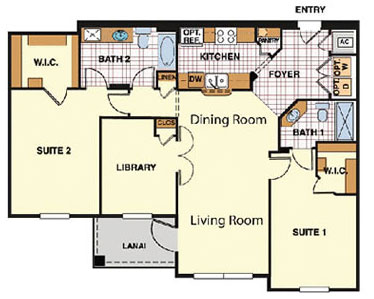 2 BED 2 BATH 1112 SQ. FT.